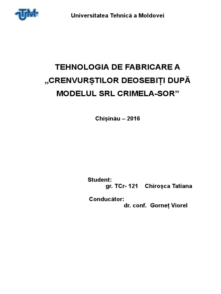 1.1 Tehnologia clasică și modernă de fabricare a crenvurștelor- crenvurști ”Deosebiți”