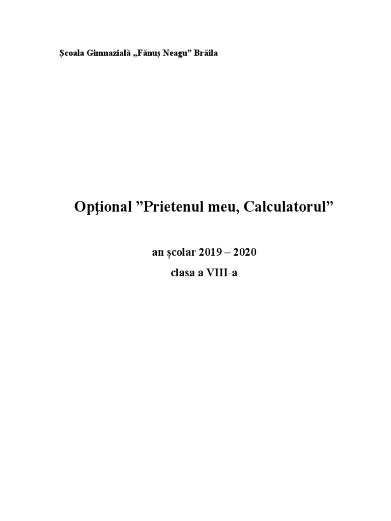 Opţional ”Prietenul meu, Calculatorul”