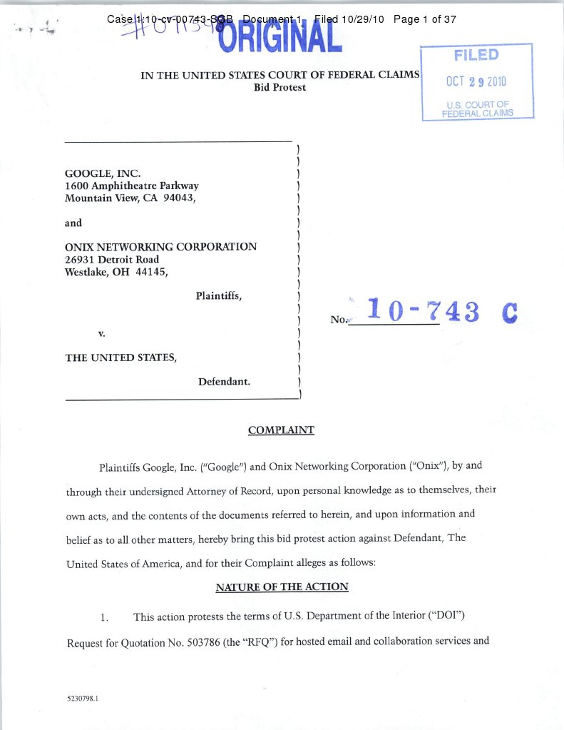Case 1:10-cv-00743-SGB Document 1 Filed 10/29/10 Page 2 of 37