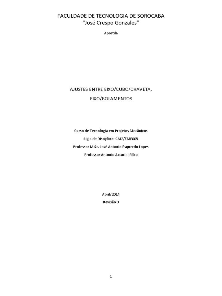 tolerâncias de diâmetro. Em geral os eixos tem acabamento conforme h7 ou h8 para buchas de