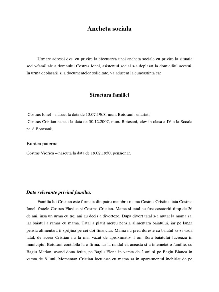 Costras Cristian s-a nascut in Judetul Botosani. Sarcina a evoluat [Link] un copil