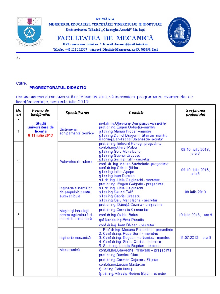 licenţă/dizertaţie, sesiunile iulie 2013: