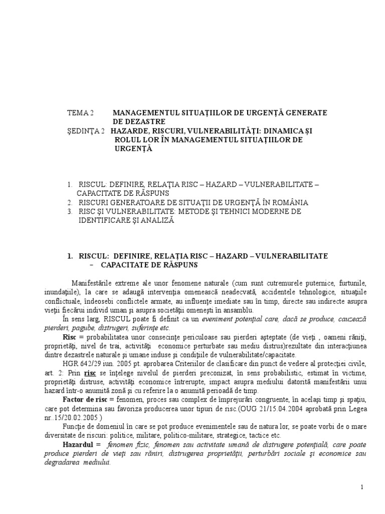 dintre dezastrele naturale şi umane induse şi condiţiile de vulnerabilitate/capacitate.