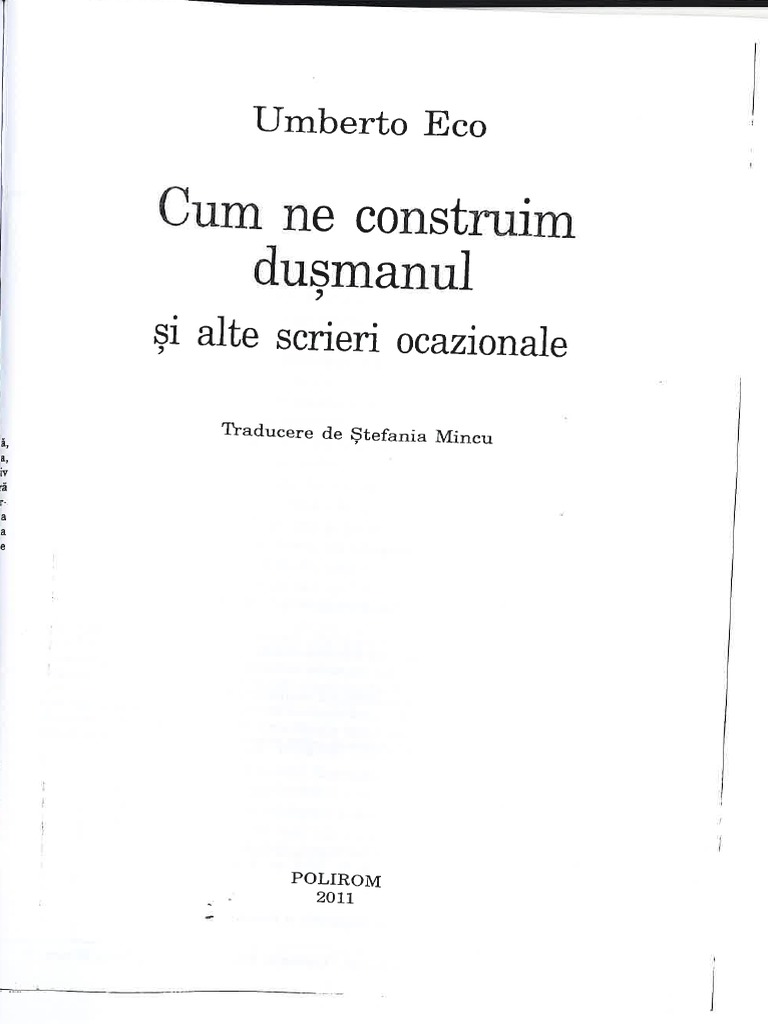 Cum ne construim dusmanul / Umberto Eco; trad. de Stefania Mincu. —