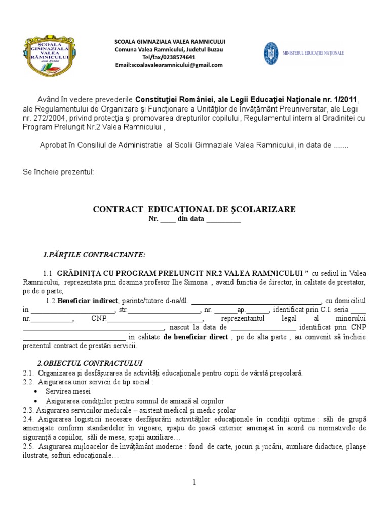 CONTRACT EDUCAȚIONAL DE ŞCOLARIZARE