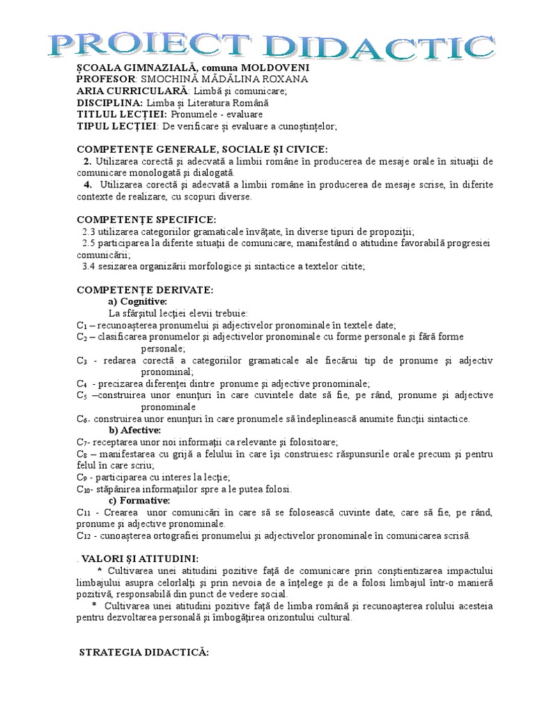 C12 - cunoașterea ortografiei pronumelui şi adjectivelor pronominale în comunicarea scrisă.