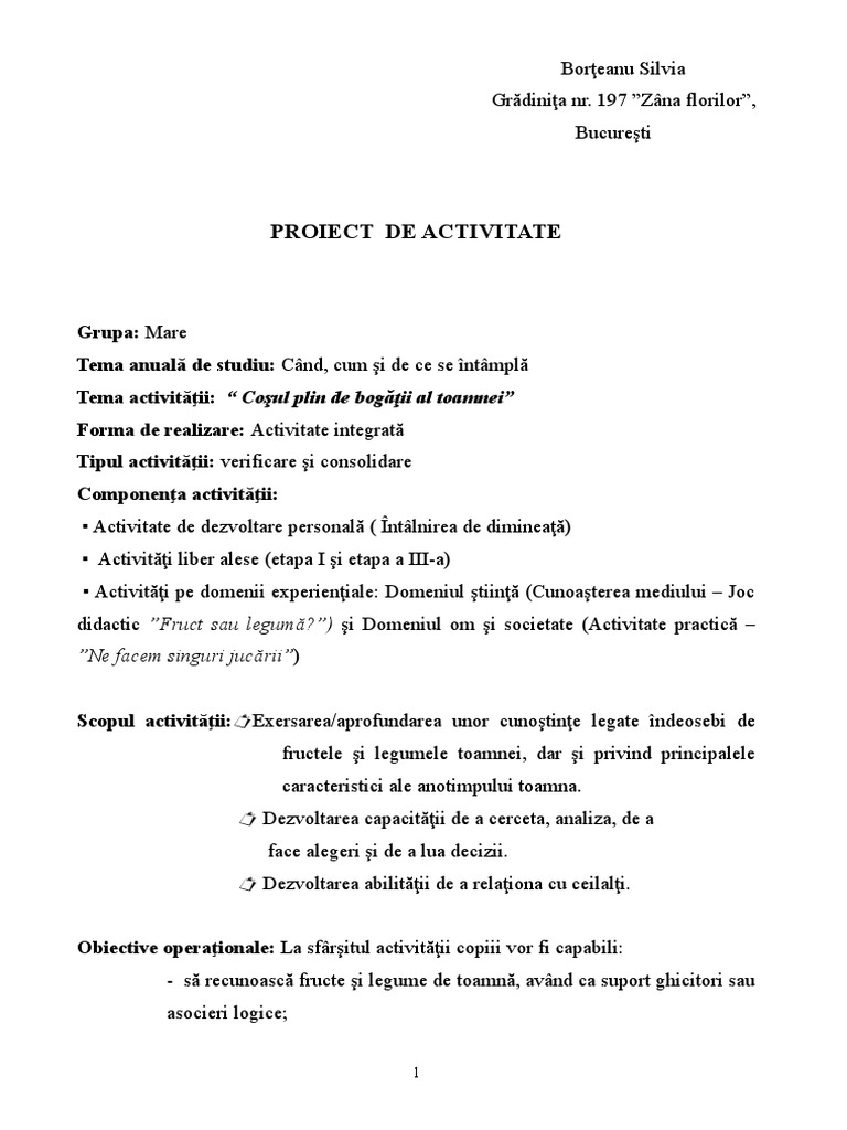 didactic ”Fruct sau legumă?”) şi Domeniul om şi societate (Activitate practică –