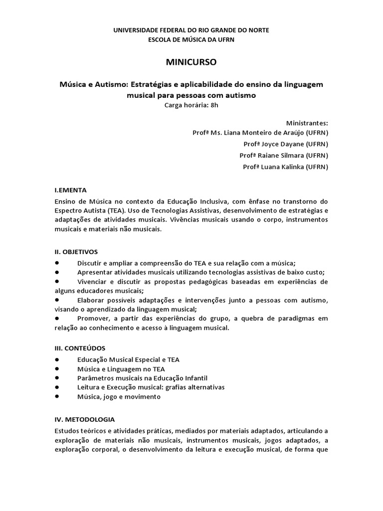● Discutir e ampliar a compreensão do TEA e sua relação com a música;