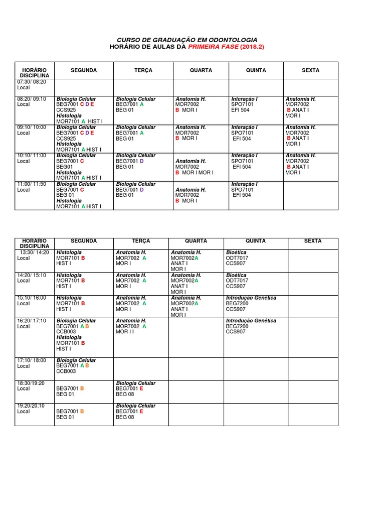 10:10/ 11:00 Fisiologia II Materiais Dent.I Pato Geral Pato Geral Pato Geral