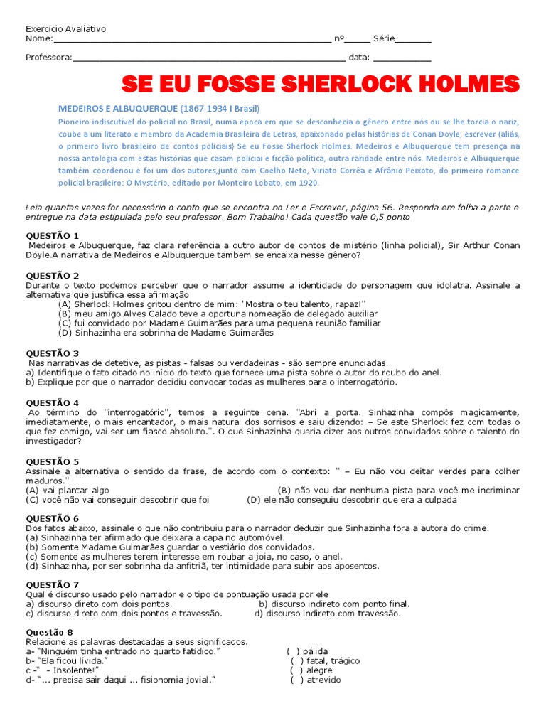 Medeiros e Albuquerque, faz clara referência a outro autor de contos de mistério (linha policial), Sir Arthur Conan