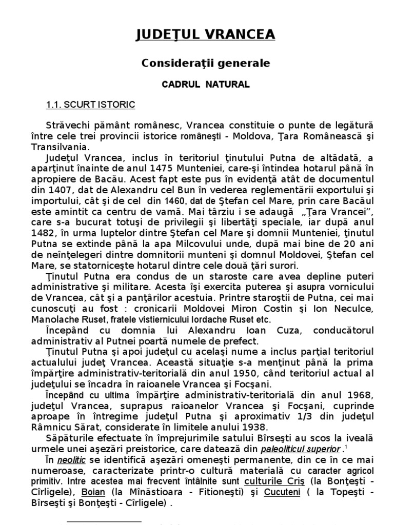 actualului judeţ Vrancea. Această situaţie s-a menţinut până la prima