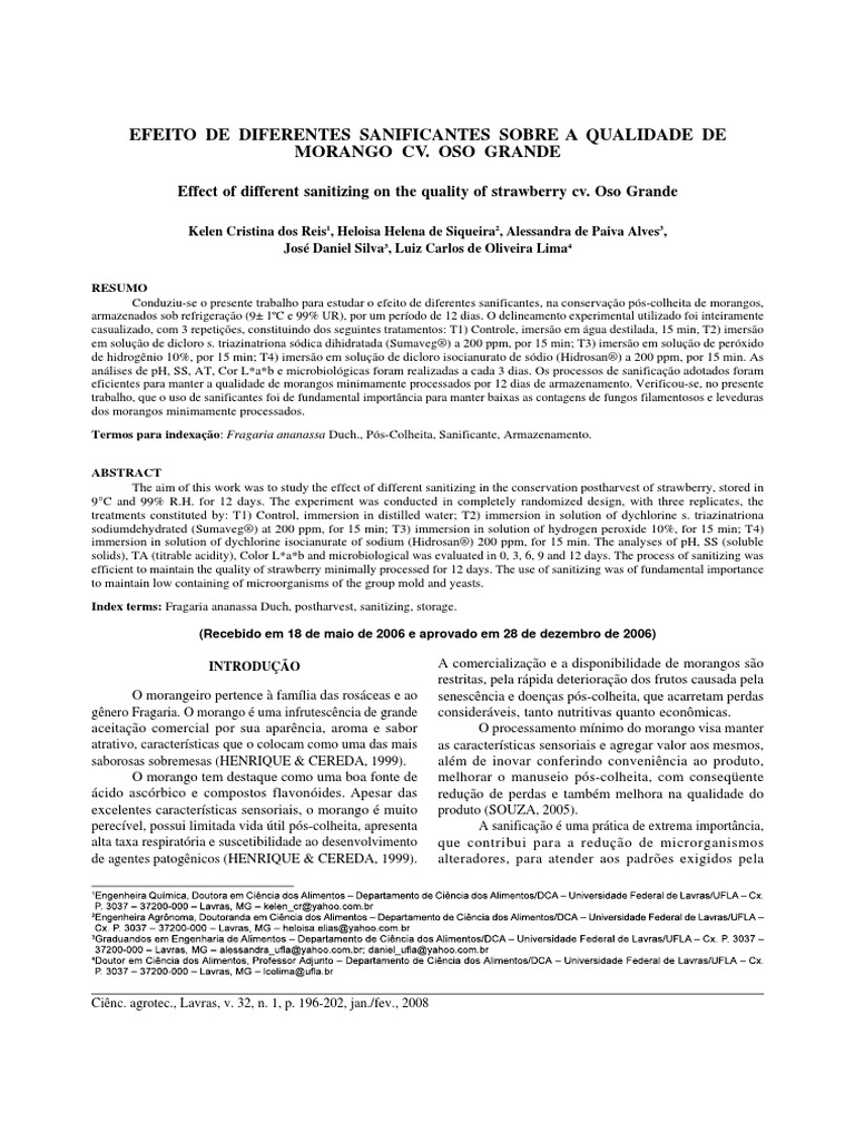 HENRIQUE, C. M.; CEREDA, M. P. Utilização de biofilmes na conservação pós-colheita de morango (Fragaria Ananassa Duch) cv IAC Campinas. Ciência e Tecnologia de Alimentos, Campinas, v. 19, n. 2, maio/ago. 1999.