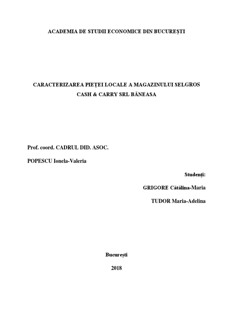CARACTERIZAREA PIEȚEI LOCALE A MAGAZINULUI SELGROS