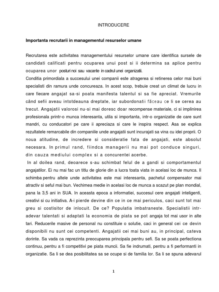 Importanta Recrutarii in Managementul Resurselor Umane