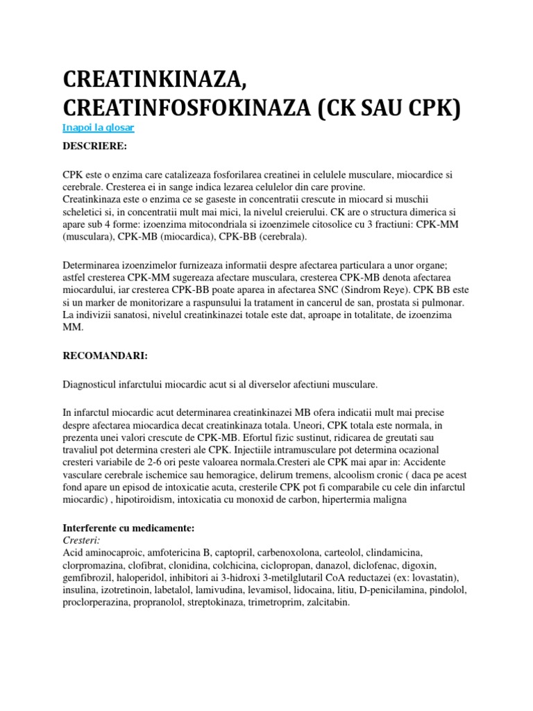 (musculara), CPK-MB (miocardica), CPK-BB (cerebrala).