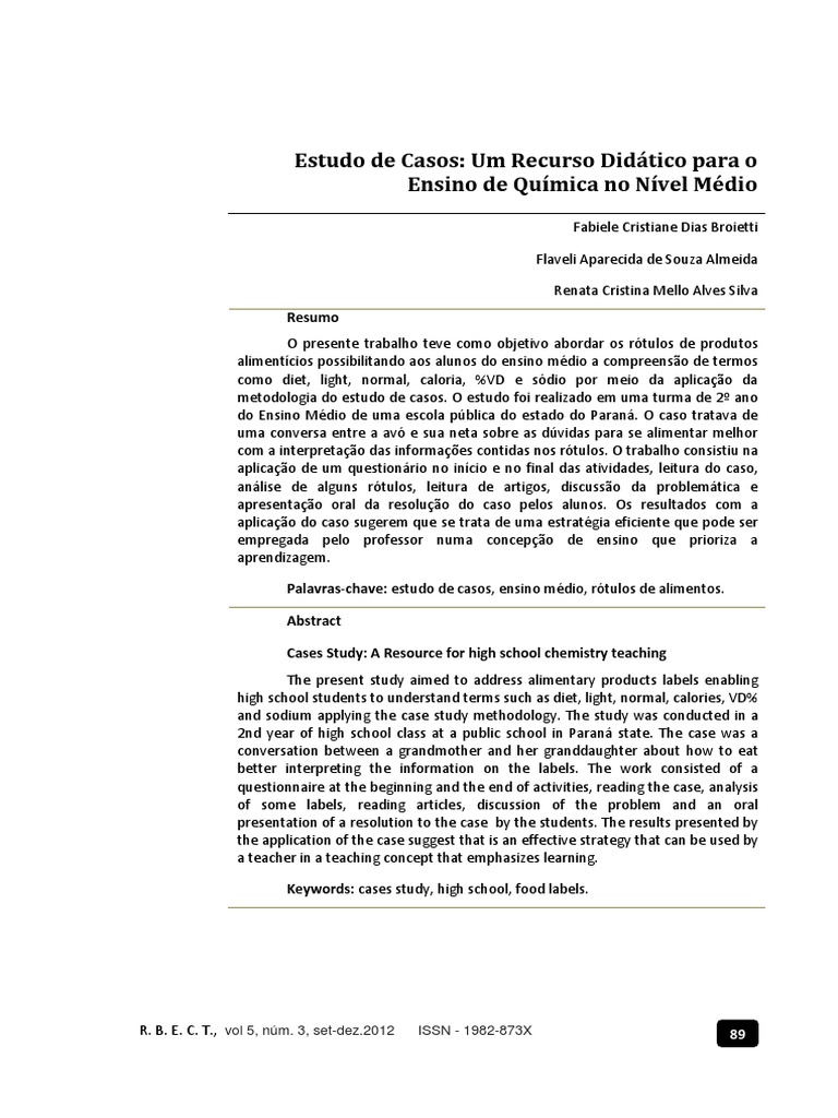 casos no Ensino de Química (Sá e Queiroz, 2009).