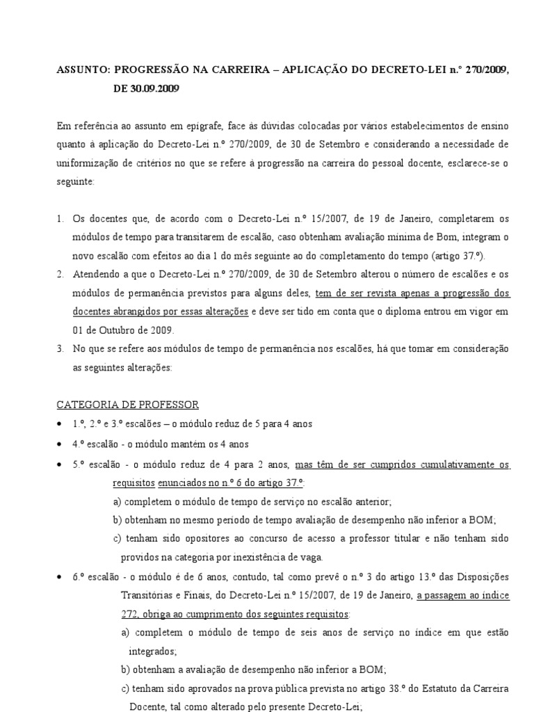 uniformização de critérios no que se refere à progressão na carreira do pessoal docente, esclarece-se o