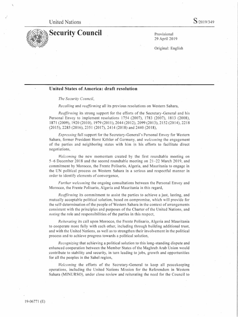 Secretary-General s assessment on 1 April 2019 that t e situation in Western Sahara