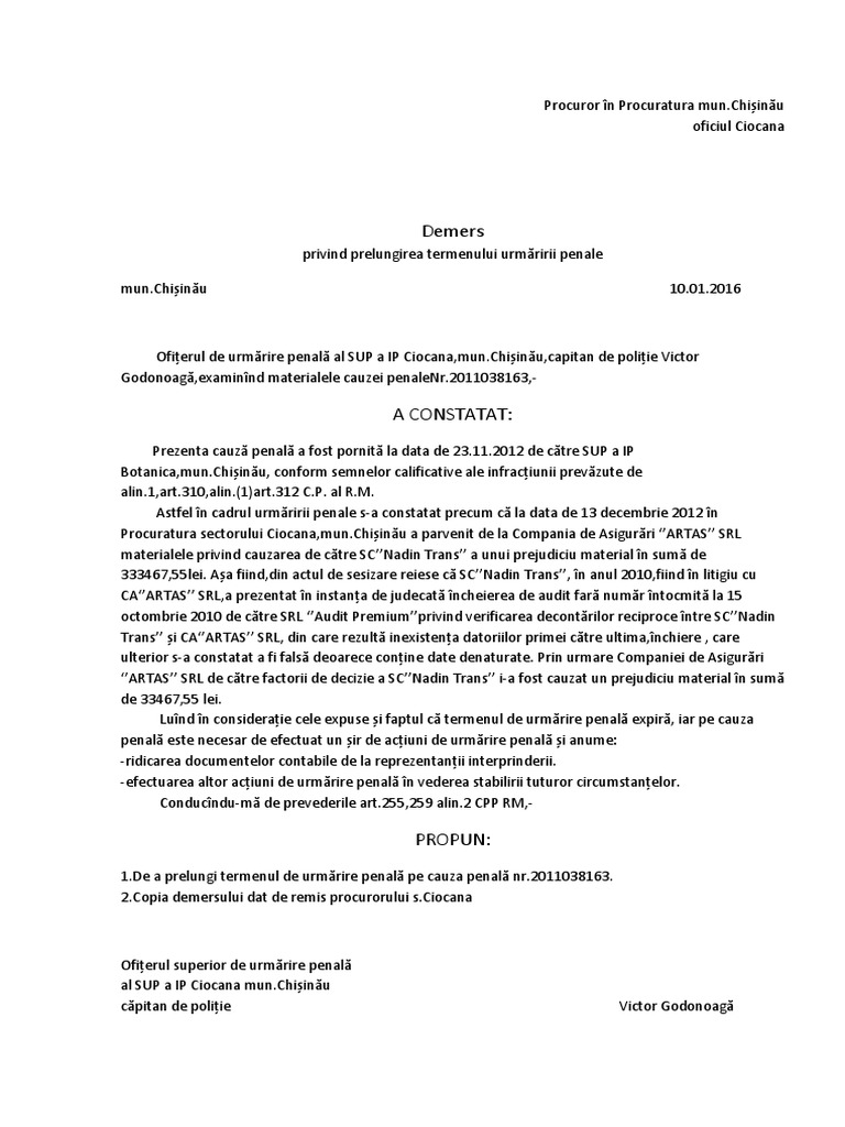 [Link] demersului dat de remis procurorului [Link]