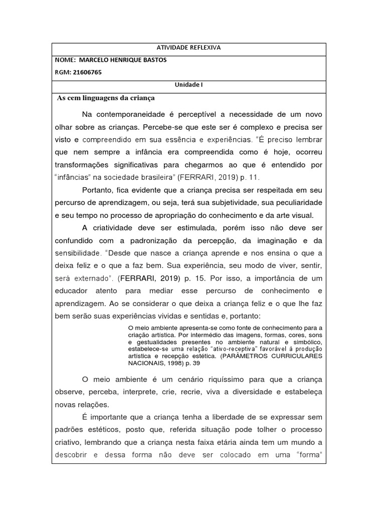 “infâncias” na sociedade brasileira” (FERRARI, 2019) p. 11.
