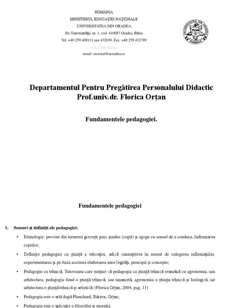 11. Orțan Florica, Introducere în pedagogie, Editura Universtății din Oradea, Oradea, 2004;