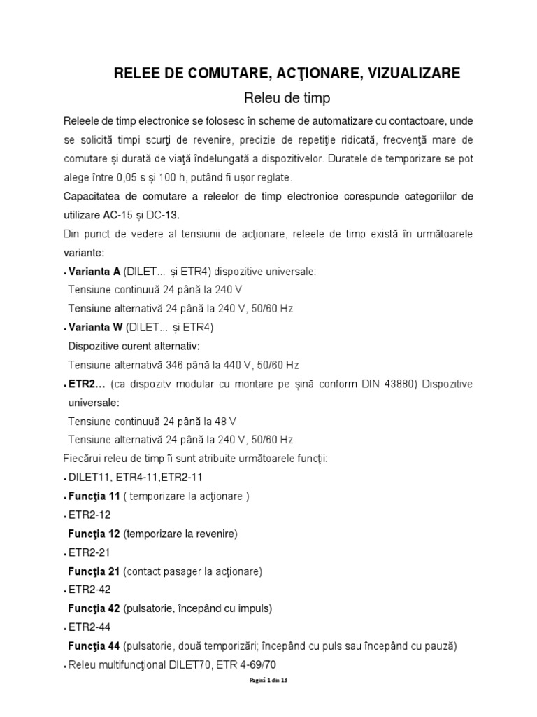 Fiecărui releu de timp îi sunt atribuite următoarele funcţii: