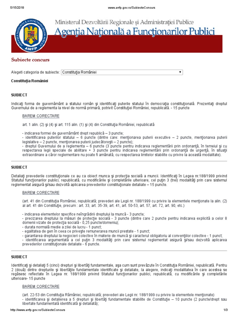 - identificarea argumentată a cel puţin 2 modalităţi prin care Legea nr.188/1999 asigură şi/sau dezvoltă aplicarea prevederilor