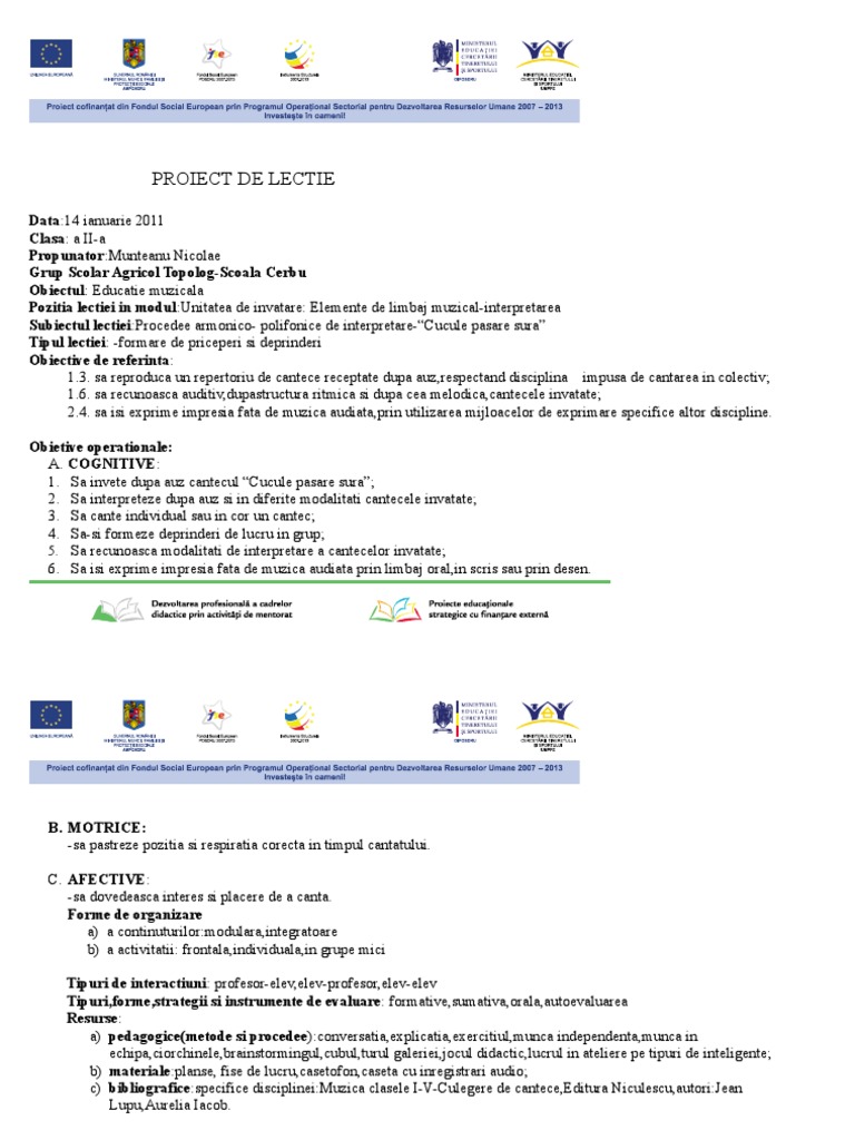 PROIECT DE LECTIE