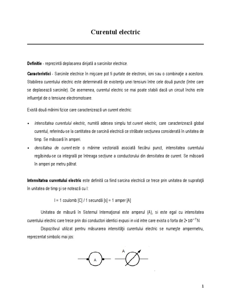 Există două mărimi fizice care caracterizează un curent electric: