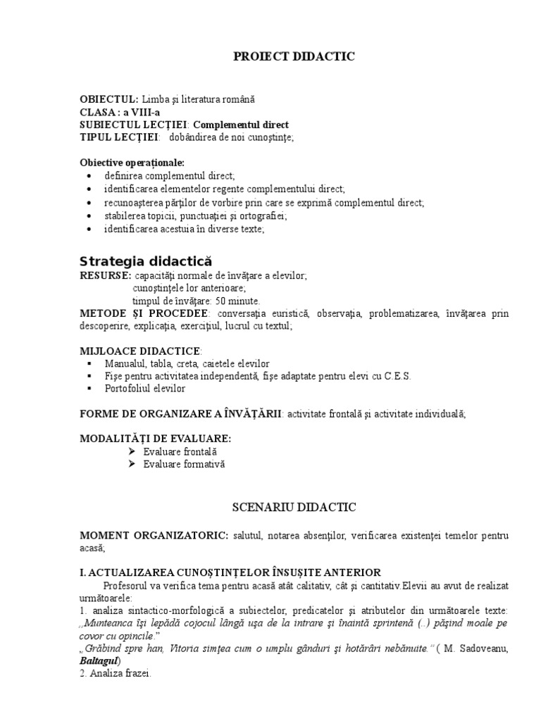 PROIECT DIDACTIC