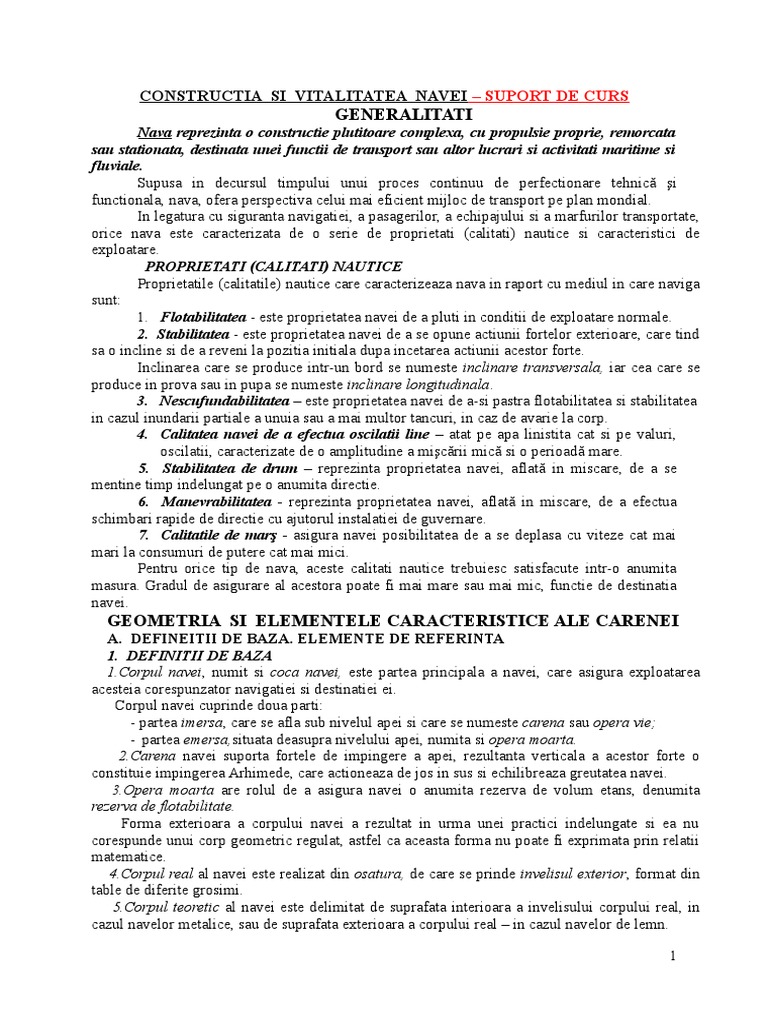 1. Flotabilitatea - este proprietatea navei de a pluti in conditii de exploatare normale.