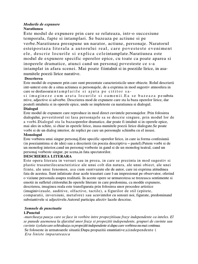 ntive, adjective si adverbe. Descrierea mod de expunere care sta la baza operelor lirice, dar