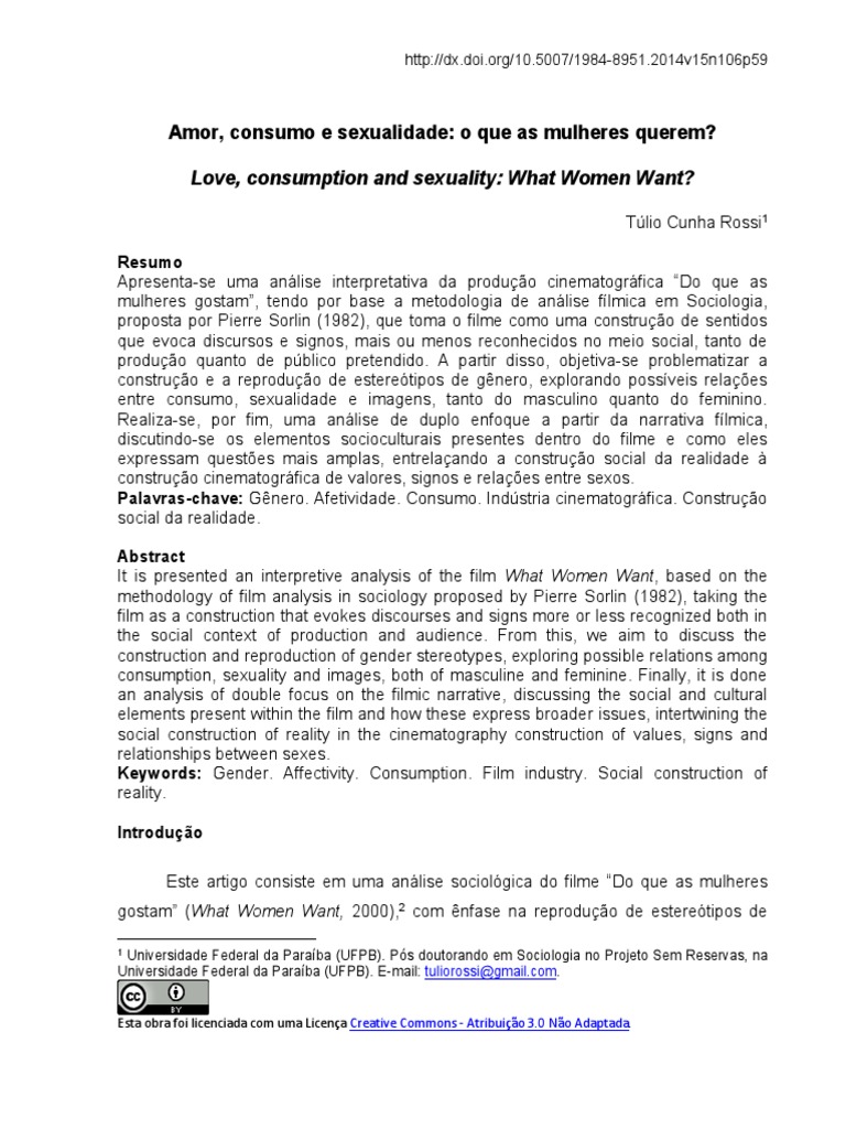 Este artigo consiste em uma análise sociológica do filme “Do que as mulheres