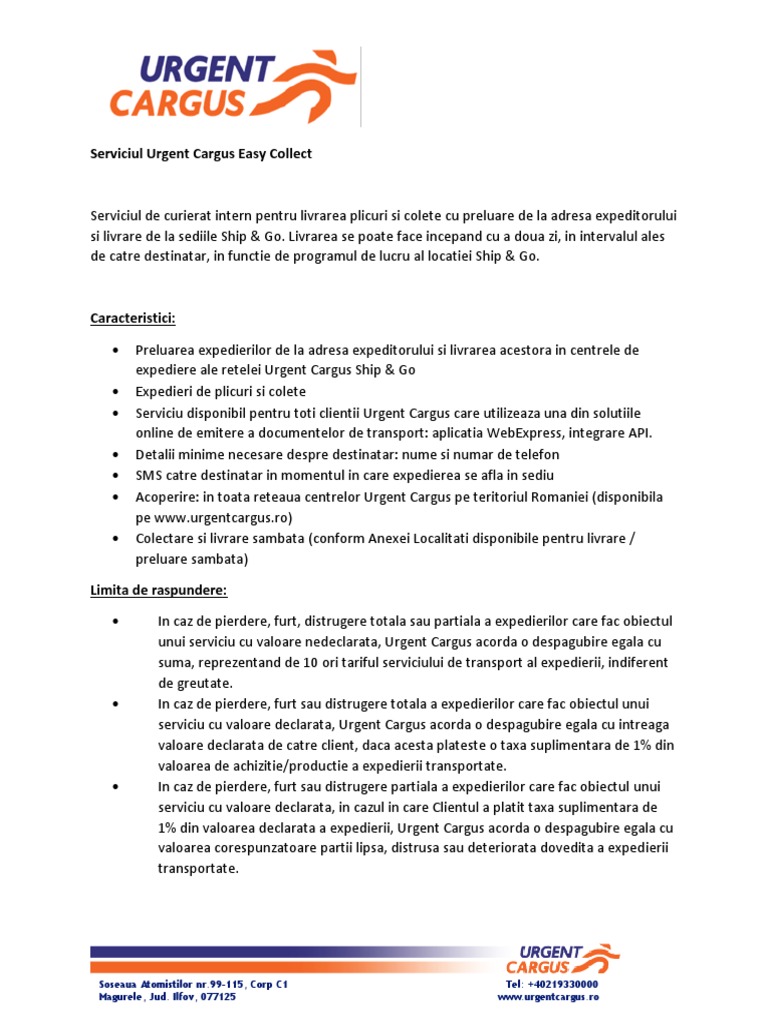 Acoperire: in toata reteaua centrelor Urgent Cargus pe teritoriul Romaniei (disponibila