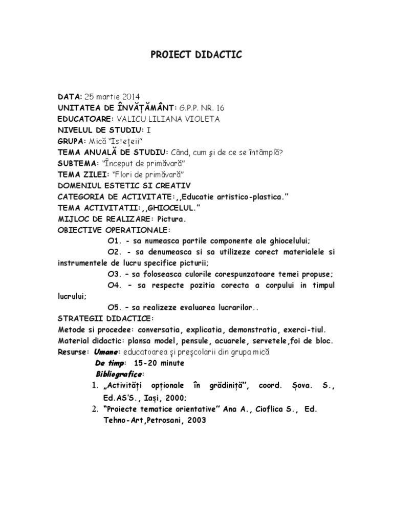 PROIECT DIDACTIC