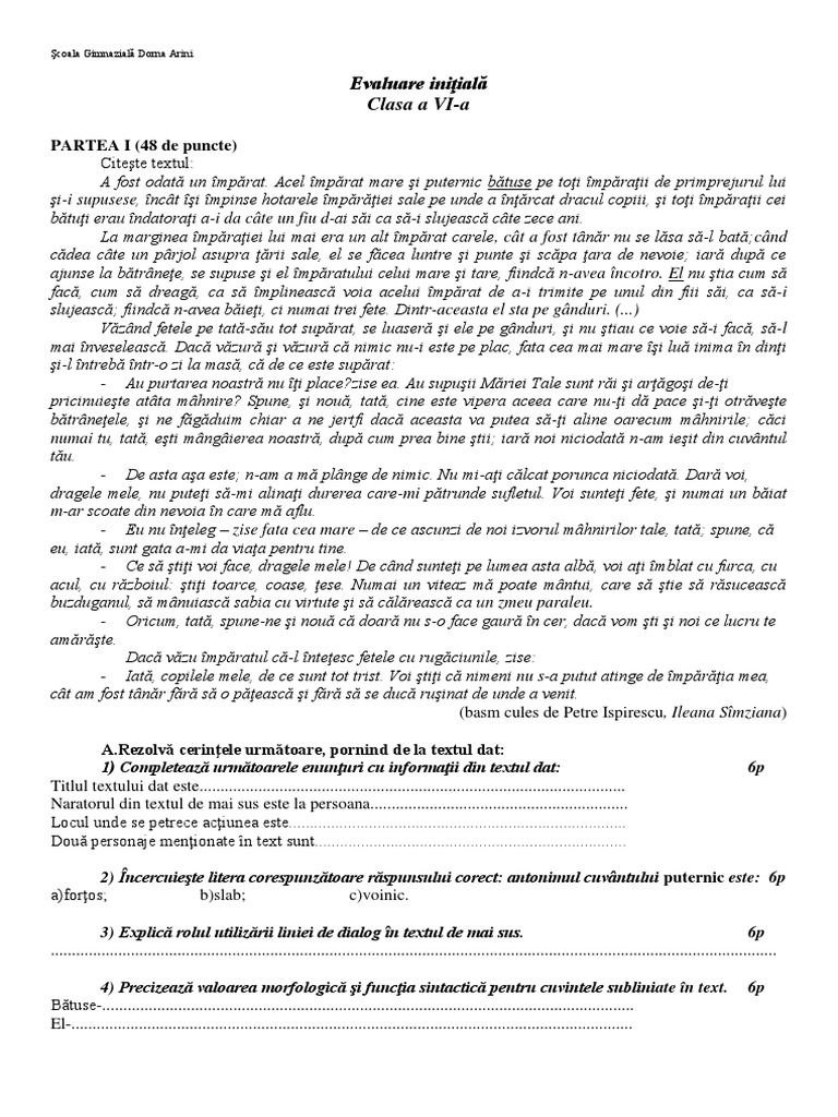 1) Completează următoarele enunţuri cu informaţii din textul dat: 6p