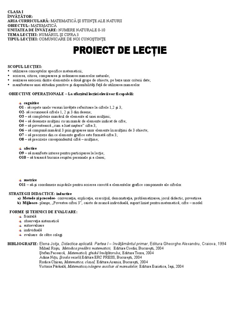 OBIECTIVELOR înveţe să scrie şi să citească cifra 3, să o recunoască, să opereze cu