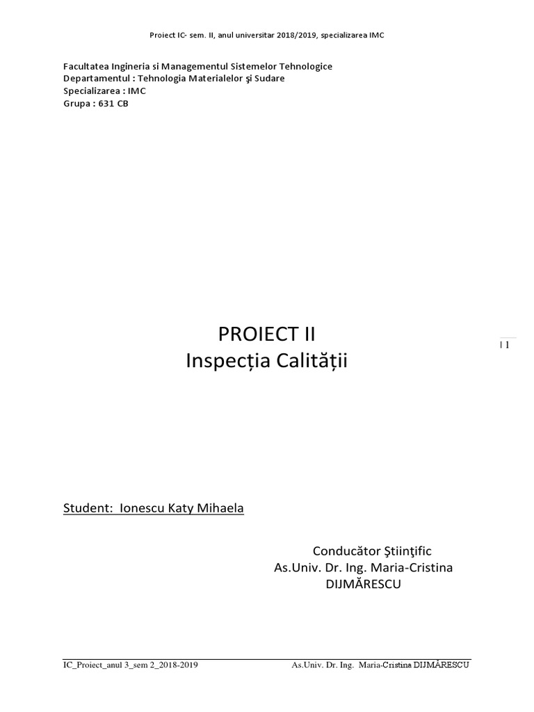 Proiect IC- sem. II, anul universitar 2018/2019, specializarea IMC