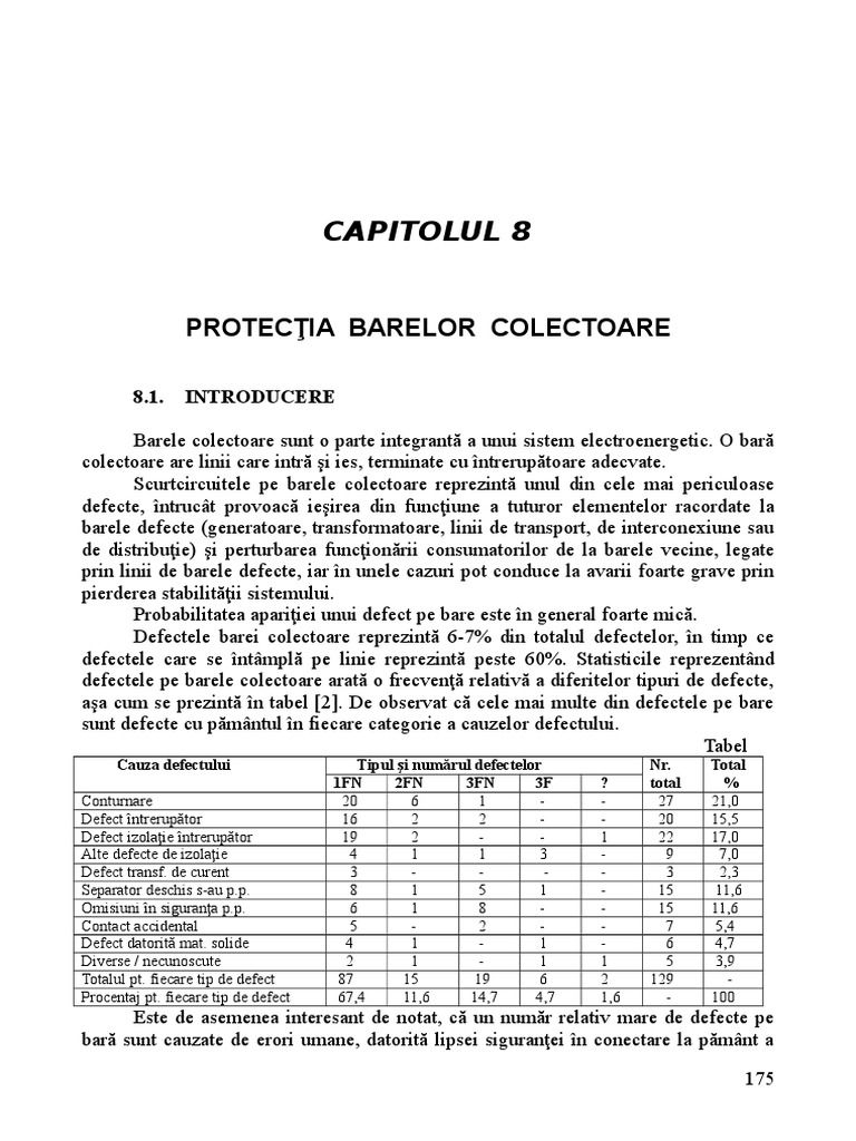 defectele pe barele colectoare arată o frecvenţă relativă a diferitelor tipuri de defecte,