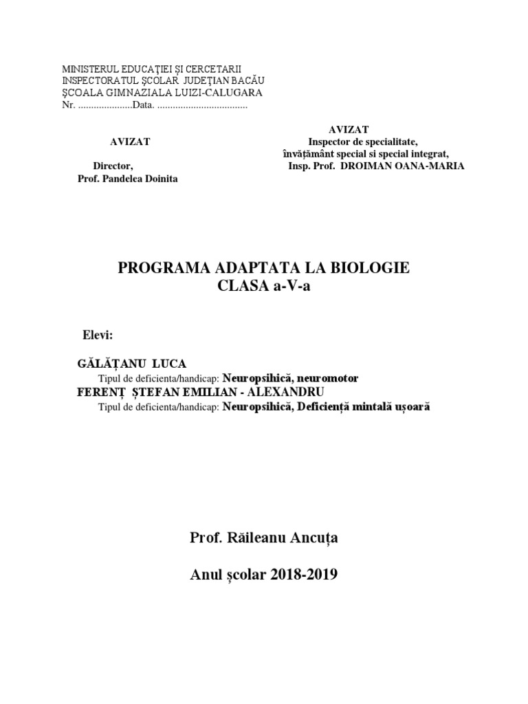 PROGRAMA ADAPTATA LA BIOLOGIE