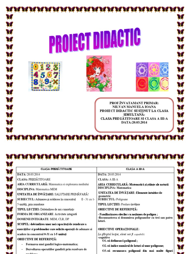 FORMA DE ORGANIZARE: Activitate integrată - Familiarizarea elevilor cu noţiunea de poligon ;