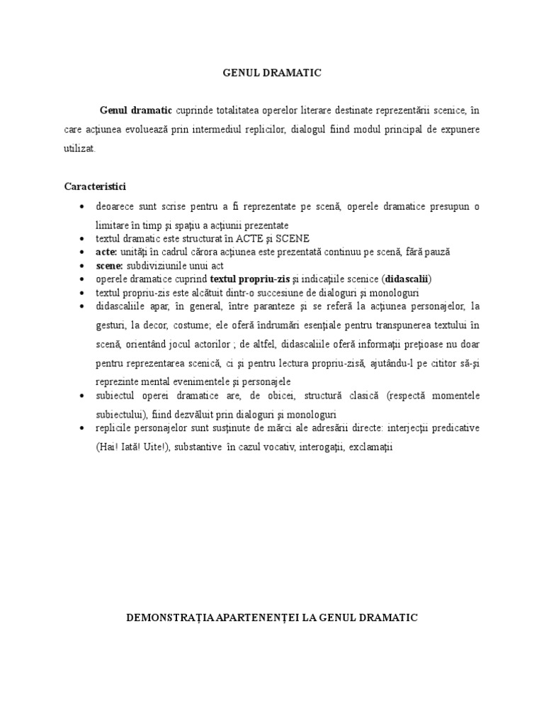 DEMONSTRAŢIA APARTENENŢEI LA GENUL DRAMATIC