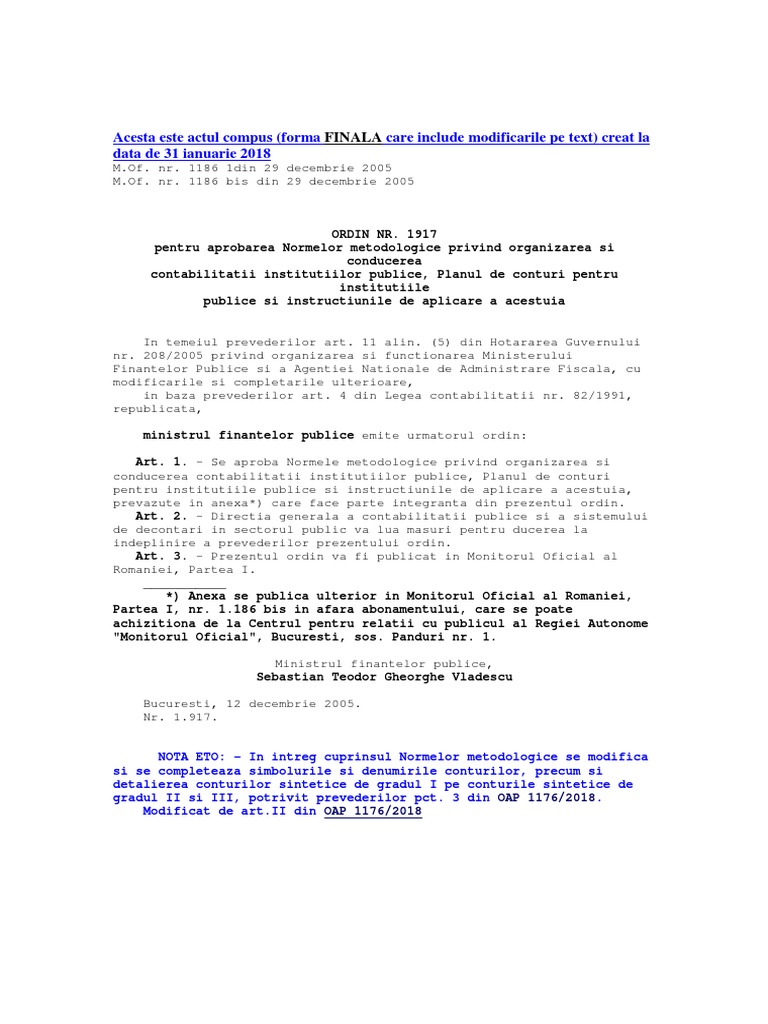 aprobate prin Ordinul ministrului finantelor publice nr. 1.917/2005, cu