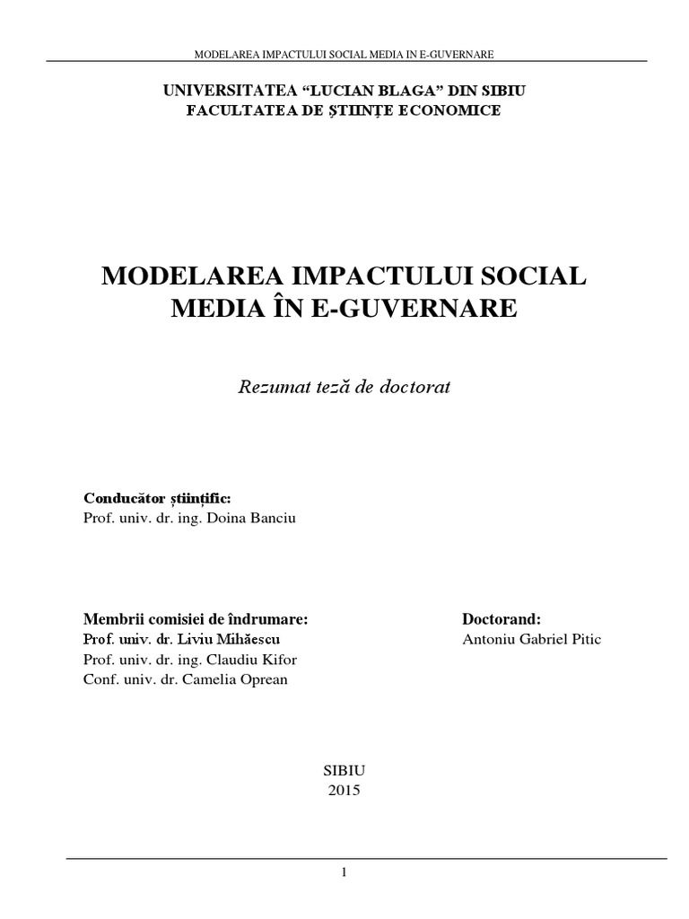MODELAREA IMPACTULUI SOCIAL MEDIA IN E-GUVERNARE