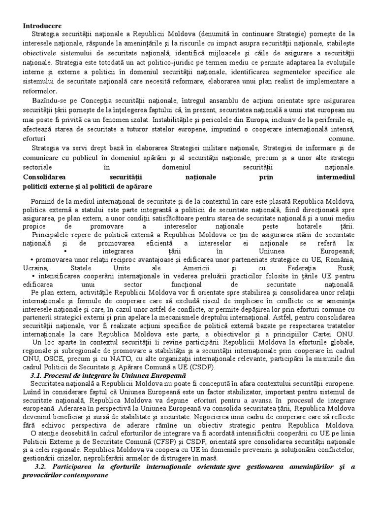 Strategia securităţii naţionale a Republicii Moldova (denumită în continuare Strategie) porneşte de la