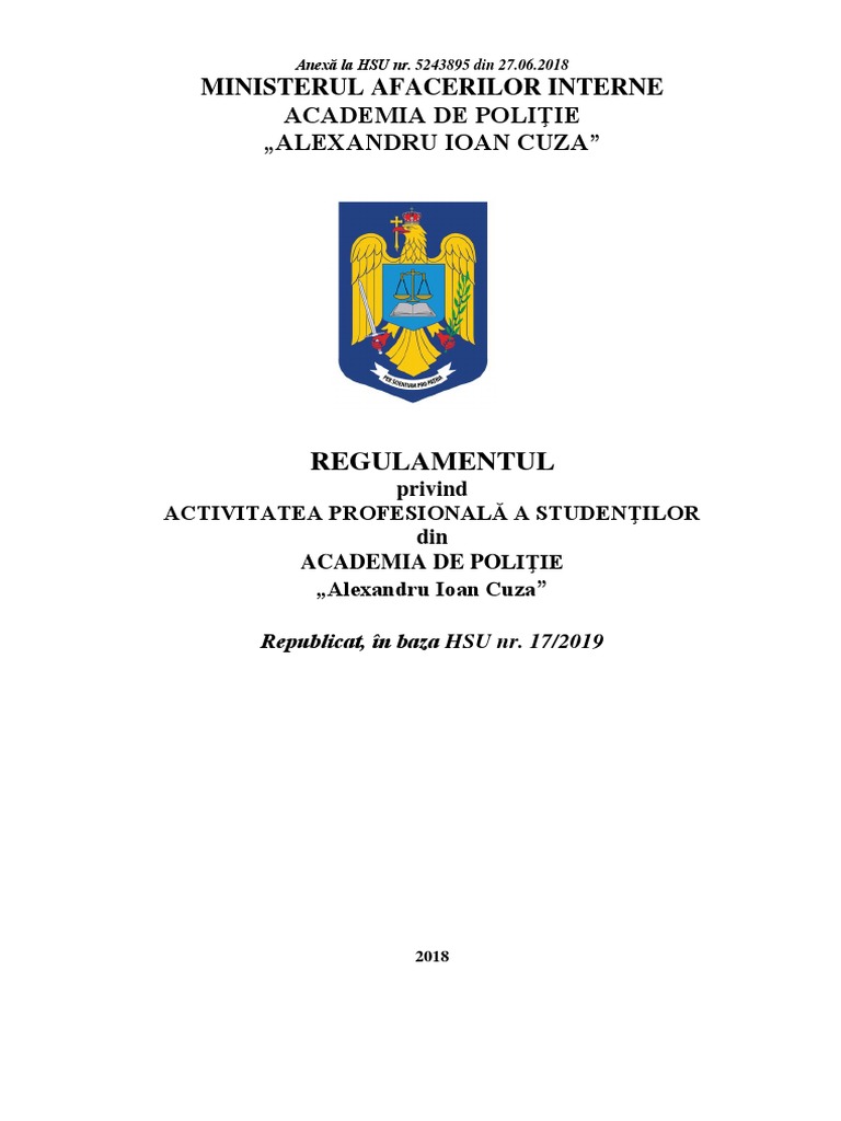 Art. 1 Regulamentul privind activitatea profesională a studenţilor Academiei de Poliţie „Alexandru Ioan