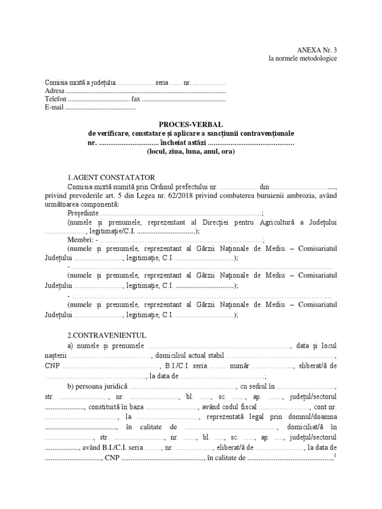 Prezentul proces-verbal de verificare, constatare și aplicare a sancțiunii contravenționale