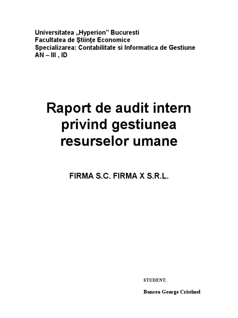 Raport de Audit Intern