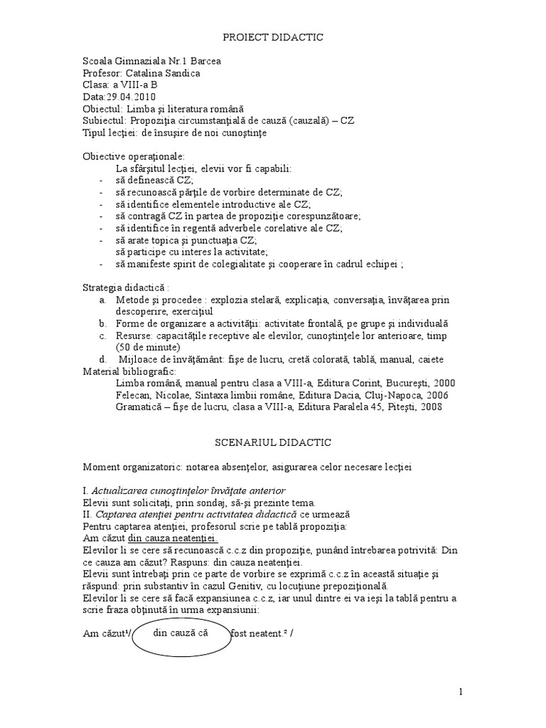 PROIECT DIDACTIC