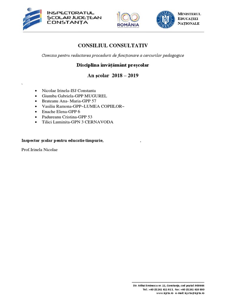 Comisia pentru redactarea procedurii de funcționare a cercurilor pedagogice